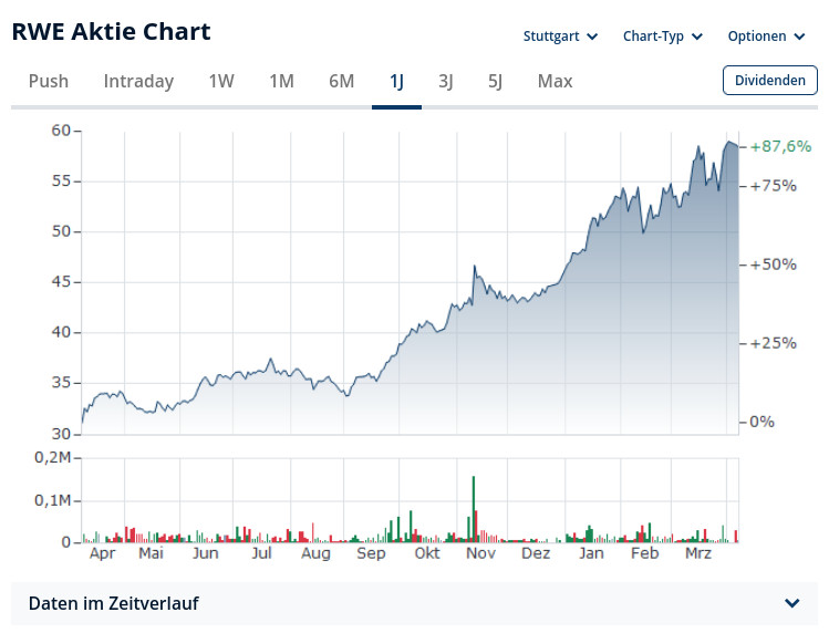 +80% AktienKurs Steigerung trotz Ukraine und Co… also für RWE und EON und ihre Aktionäre scheint das System zu funktionieren (für alle die günstigen Strom brauchen eher nicht, weil WARUM sollte ein privater Konzern (staatlich + private Anleger) Dir den Strom günstiger Verkaufen als dieser UMBEDINGT MUSS? (Ja der freie Markt regelt das? Naja… wenn über Aktien RWE zu EON gehört, dann regelt der freie Markt da überhaupt nix mehr)